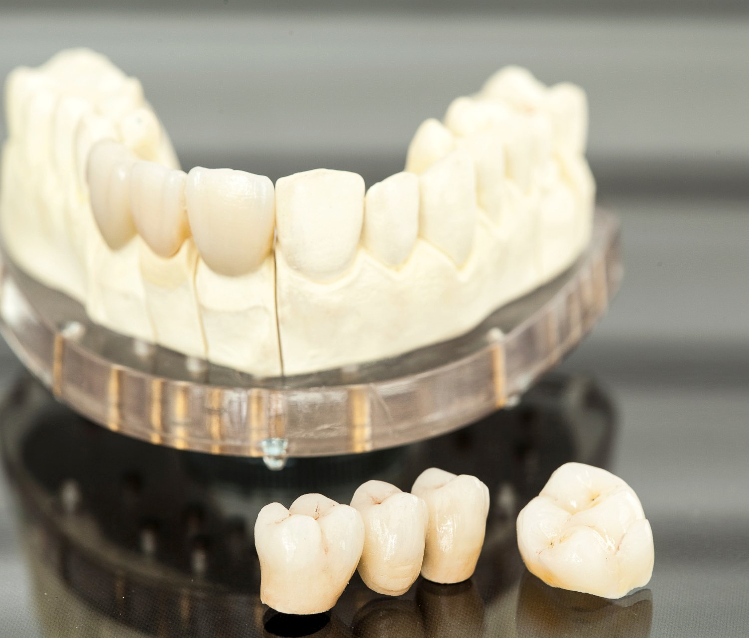 Deshalb verwenden wir für Ihren Zahnersatz ausschließlich hochwertige Materialien und arbeiten immer mit zertifizierten deutschen zahntechnischen Laboren zusammen. Ob herausnehmbarer Zahnersatz oder festsitzend, ob auf eigenen Zähnen oder auf Implantaten abgestützt, wir verfügen über langjährige Erfahrung und egal für welchen Zahnersatz Sie sich entscheiden, profitieren Sie von unseren langjährigen Kooperationen mit erfahrenen Zahntechnikern und versierten Kieferchirurgen.