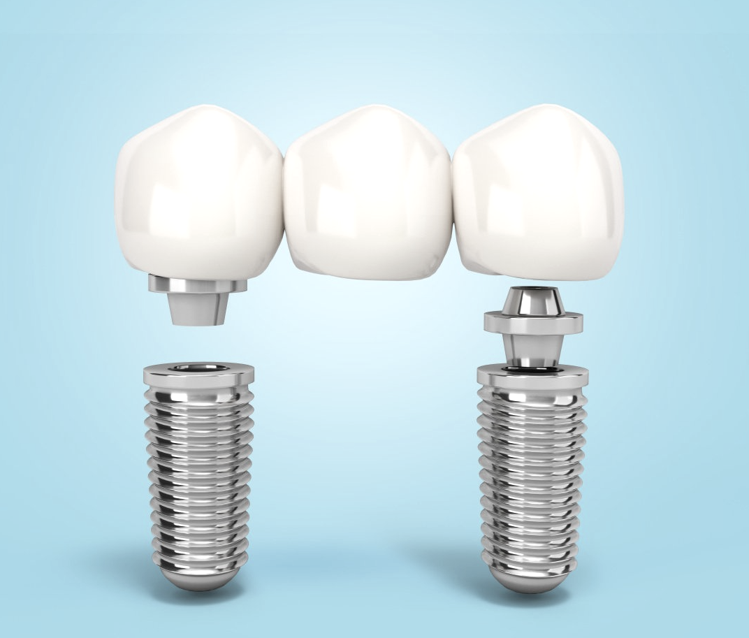 Durch Implantate können einzelne oder auch mehrere Zähne ersetzt werden. Selbst umfangreiche festsitzende Brücken oder herausnehmbarer totaler Zahnersatz (Vollprothesen) können durch Implantate erfolgreich abgestützt werden, wenn eigene Zähne nicht mehr in ausreichender Anzahl vorhanden sind.